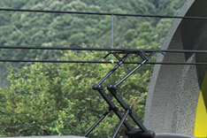 直接與電氣鐵路車輛的縮放儀接觸并供電的電車線。