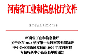 華通電纜榮獲2023年度第一批河南省“專精特新中小企業(yè)”稱號